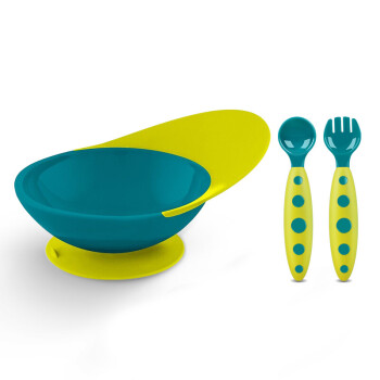 【 Boon Bowl/Spoon/Fork Set 】 Boon Boer Children's and Baby Cutlery Baby Feeding Set Anti drop Infant Growth Training Bowl/Spoon Cutlery Set Blue/Yellow 【 Market Quotation Price Evaluation 】-