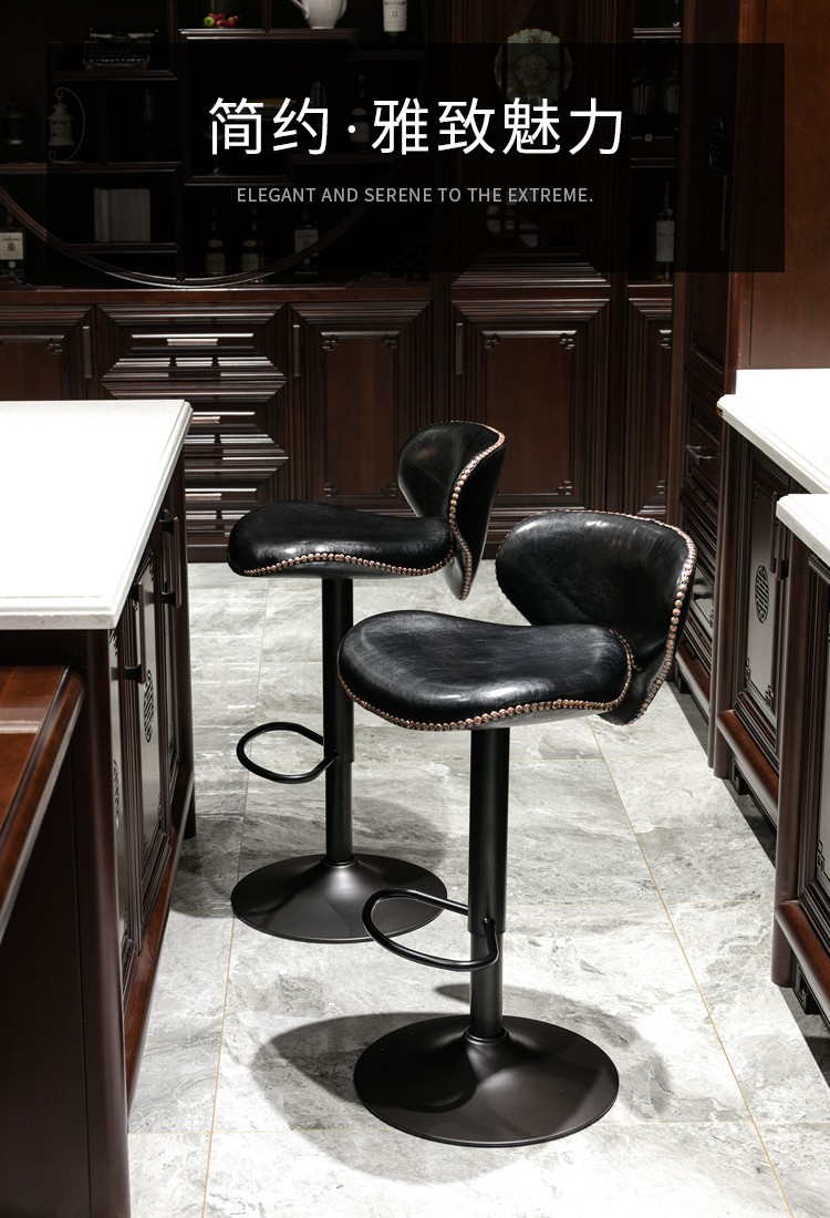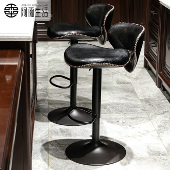 Aulife European style bar chair, lift bar chair, rotary bar chair, cash register, high foot chair, front desk backrest chair, black seat surface - high end (black paint)