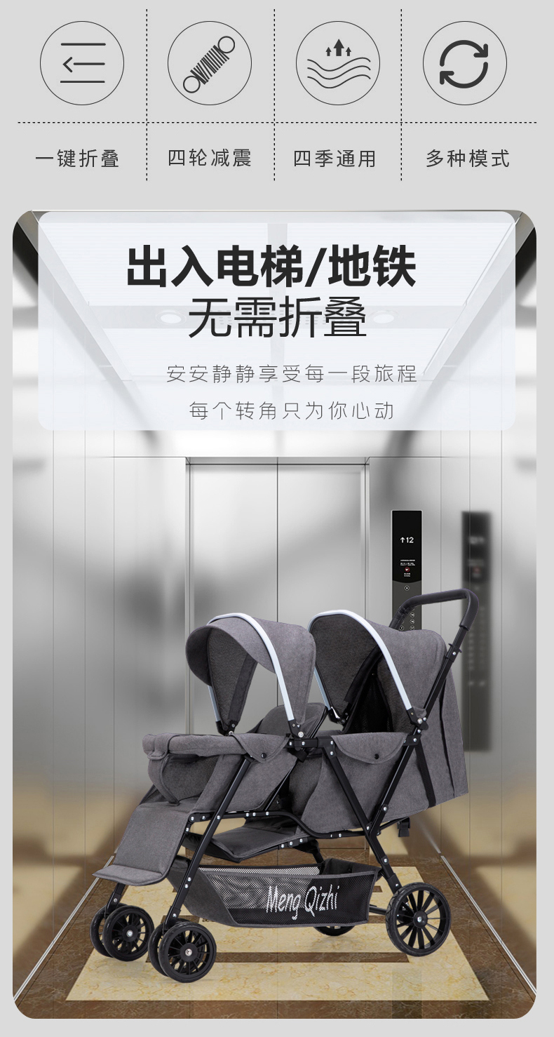 Newbie twins Baby Stroller, front and rear seats, two twins can sit and lie down, lightweight and portable, two babies, children Stroller, aluminum tube, ocean